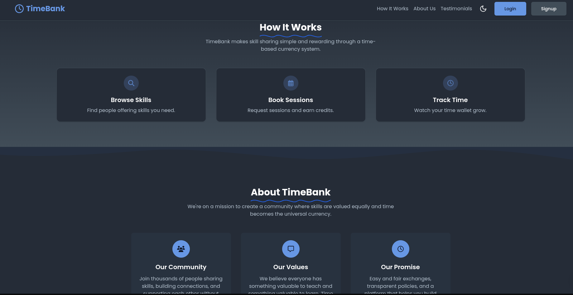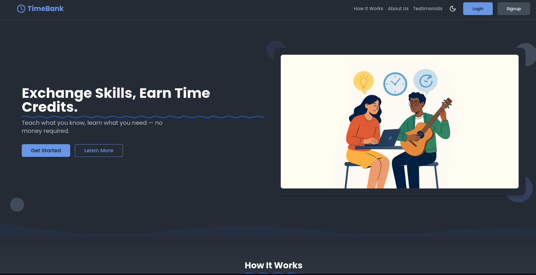 A web platform where students can exchange services and skills using time credits instead of money.